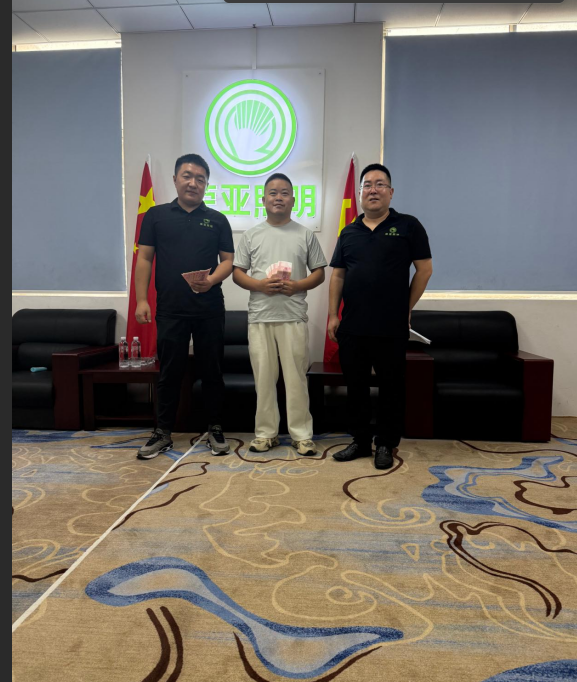 荣亚照明针对9月份完成个人业绩20万元以上员工吴宽、徐晓婷、朱赞予以奖励,个人业绩30万元以上宋淑楠预计奖励,以及40万元以上优秀销售人员予以奖励.并针对采购负责人考虑9月份在交期,品质以及原材料价格控制做出突出贡献的朱家银予以奖励。希望大家在未来工作中持续奋进.
